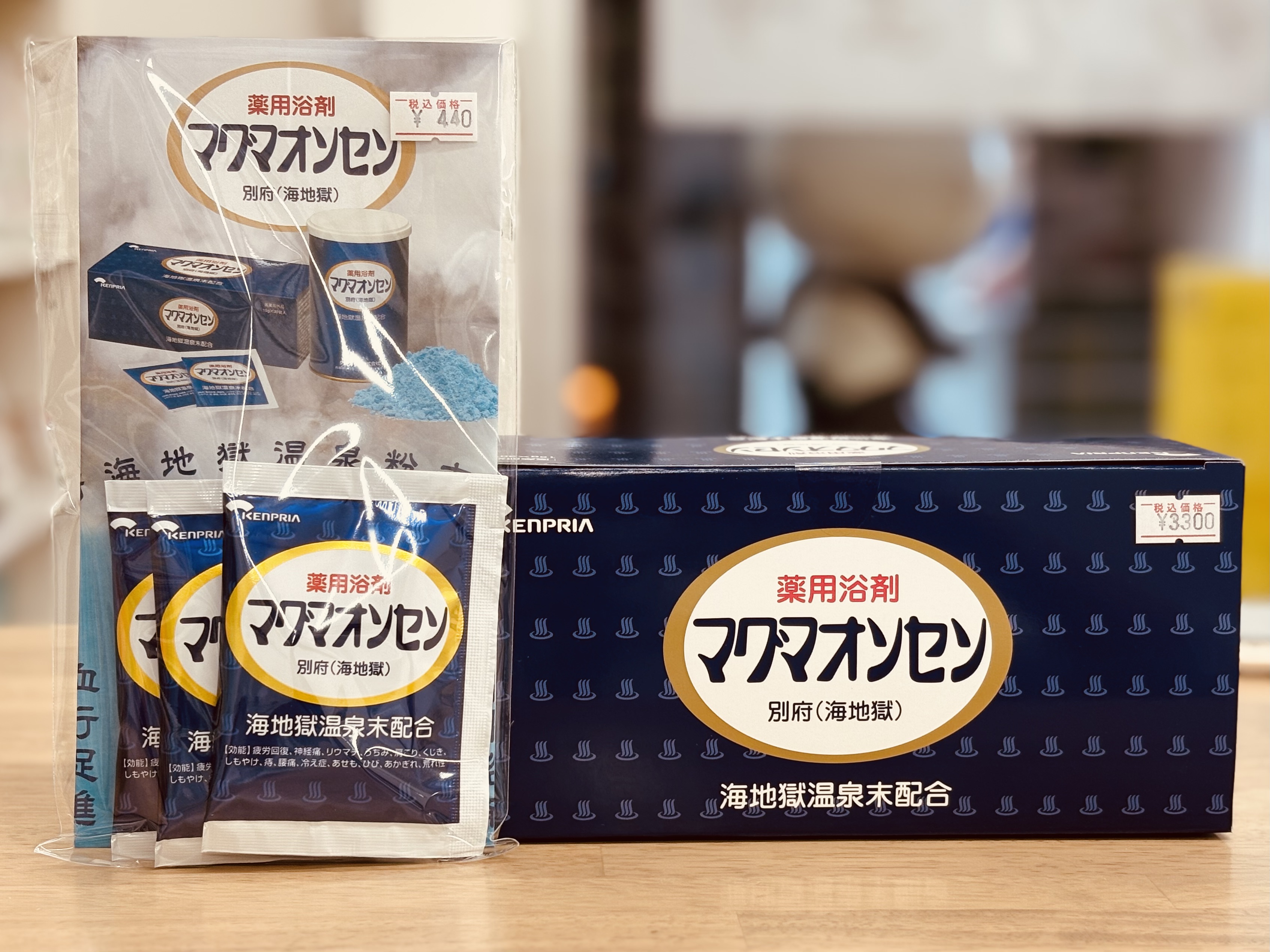 「噴霧乾燥法」という特殊製法で、この海地獄の温泉水を粉末化して配合したものがこの入浴剤「マグマオンセン」です。