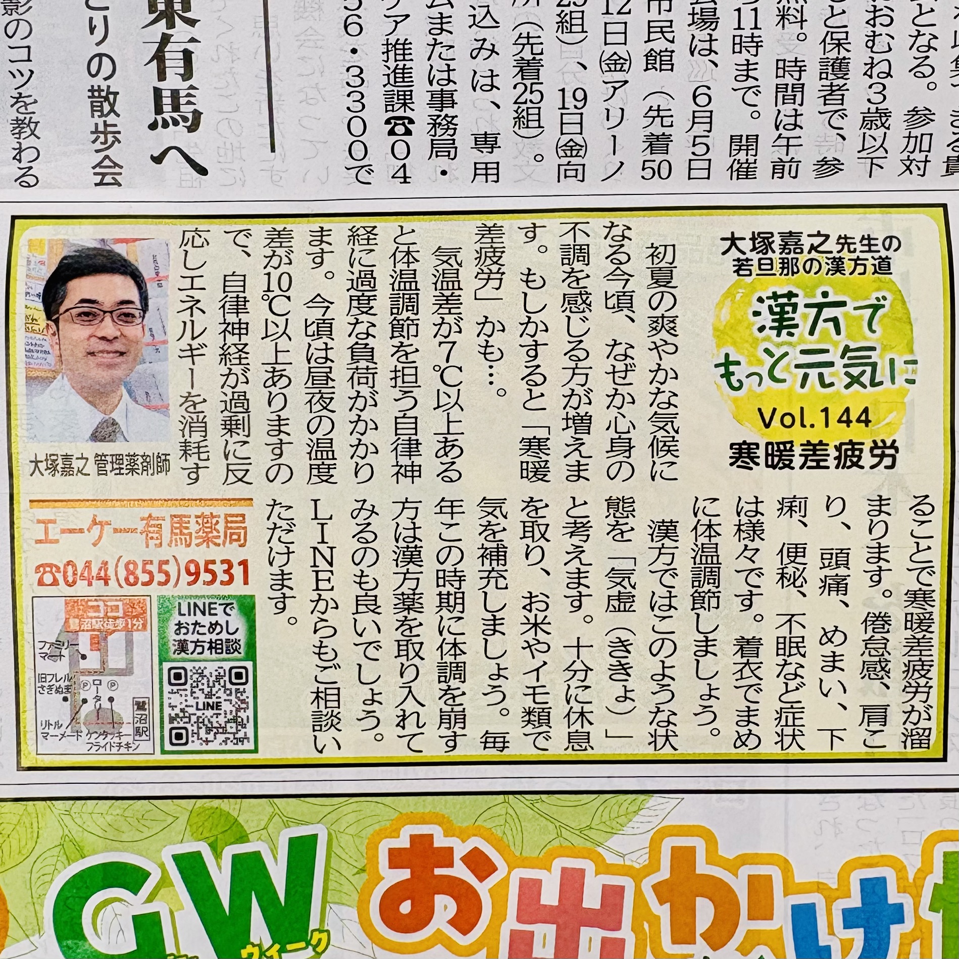 4〜5月は昼夜の温度差が10℃以上ありますので、自律神経が過剰に反応しエネルギーを消耗することで寒暖差疲労が溜まります。
